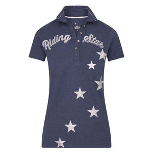 For you it’s always time to shine and that makes you a RIDING STAR. Ride and shine in this short sleeveless polo shirt with tipping on the collar and sleeve. Glitzy stars all over the place. Placket with button closure. Also available in kids sizes.