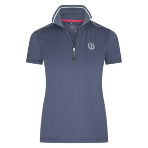 This sporty polo shirt expands athleisure by a modern touch. The nicely ribbed polo collar with a fine, jagged edge features a Lurex stripe in shiny silver. Under the collar, there is a noticeable, short zip, and the left side of the chest features the shiny IR logo. This tailored short-sleeved model is refined with flat seams in a contrasting colour on the shoulder and on the sides. The shirt also has a rounded hem, both at the front and the back. Sporty logo text in silver on the side. The fabric is particularly comfortable to wear, and offers a great deal of freedom of movement. Fits in virtually anywhere and easy to style, even as a street outfit.