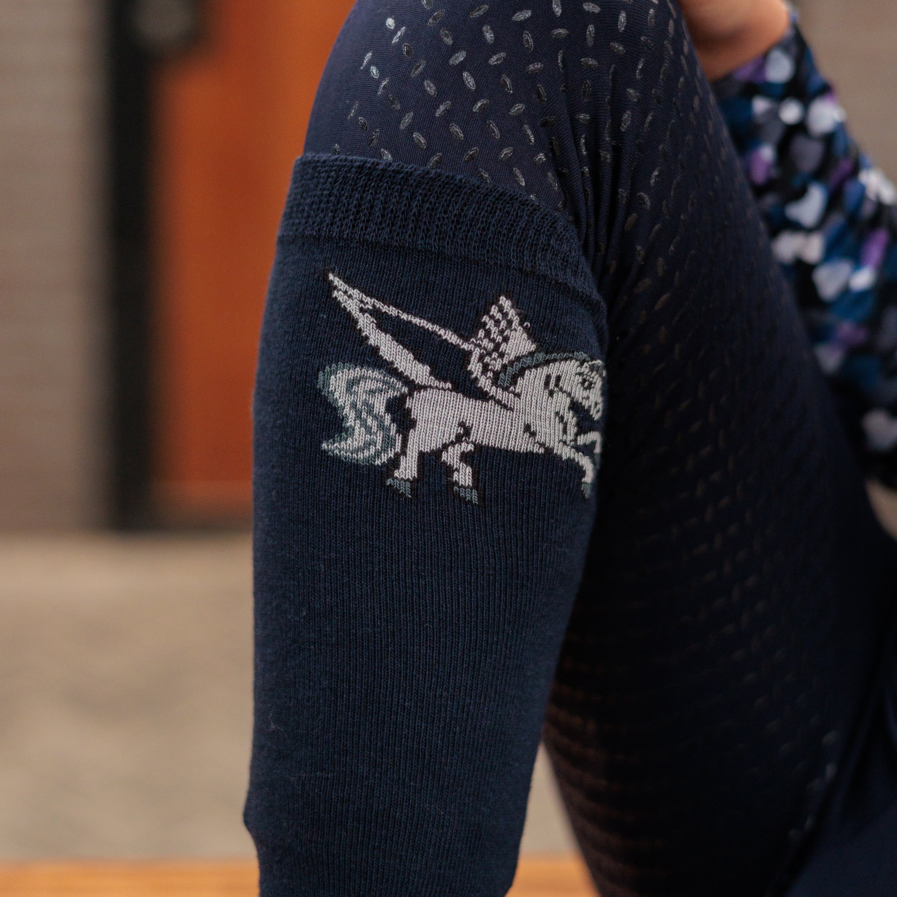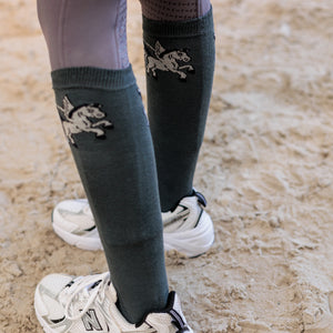 Ready to add some sparkle to your riding gear? The IRH-Pegasus Socks are here to make a statement, combining uncompromised comfort with Imperial Riding's signature flair. Designed for riders who love to stand out, these high socks will have you feeling fantastic from the moment you pull them on. With a luxurious cotton foot for ultimate breathability and a striking Pegasus illustration, they're not just socks – they're your new favorite accessory for the stable, the arena, or simply showing off your equestrian passion.