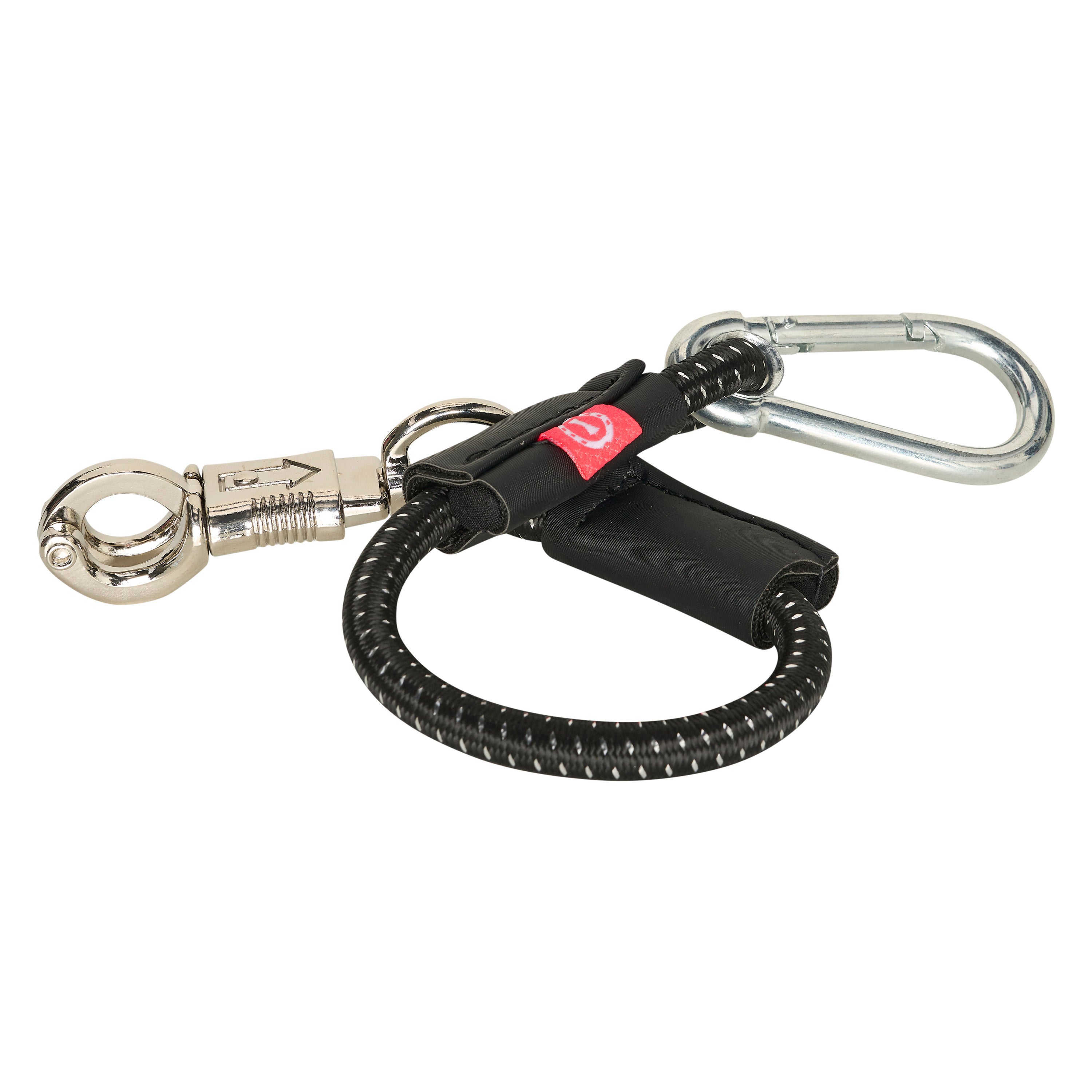Elastic trailertie with panic hook and carabiner. Length: 40cm