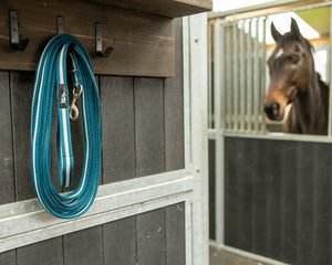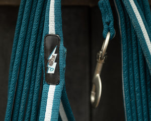 Beautiful lunging line matching the rest of the Thunderbolt set. The lunging line comes in a bag, making it convenient to store.