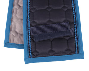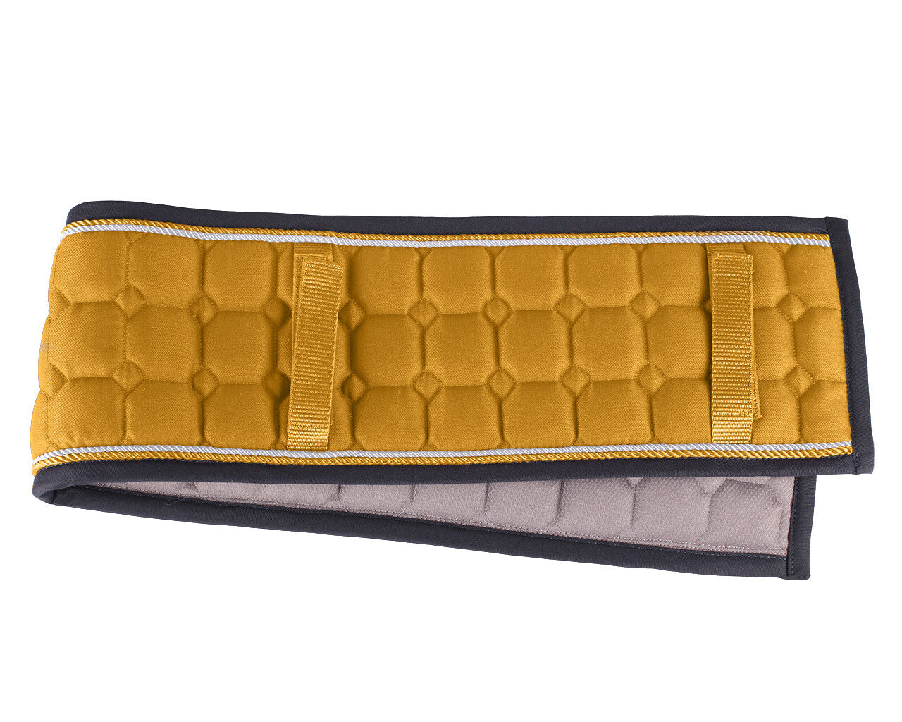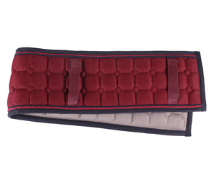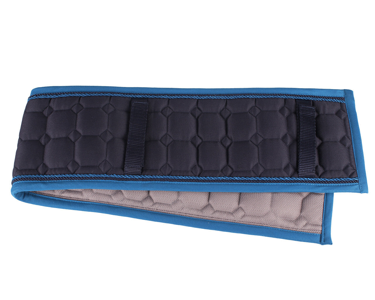 Pad to use under a lunging girth or rigging. Equipped with four loops with a Hook-and-loop fastener. The pad is lined with absorbent fabric and is decorated with two decorative cords....