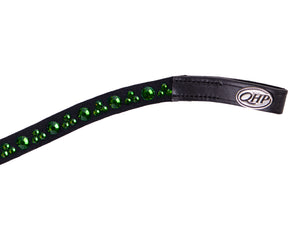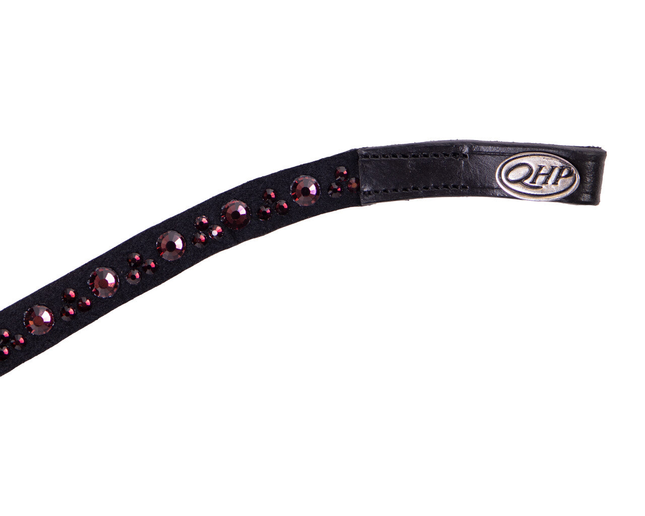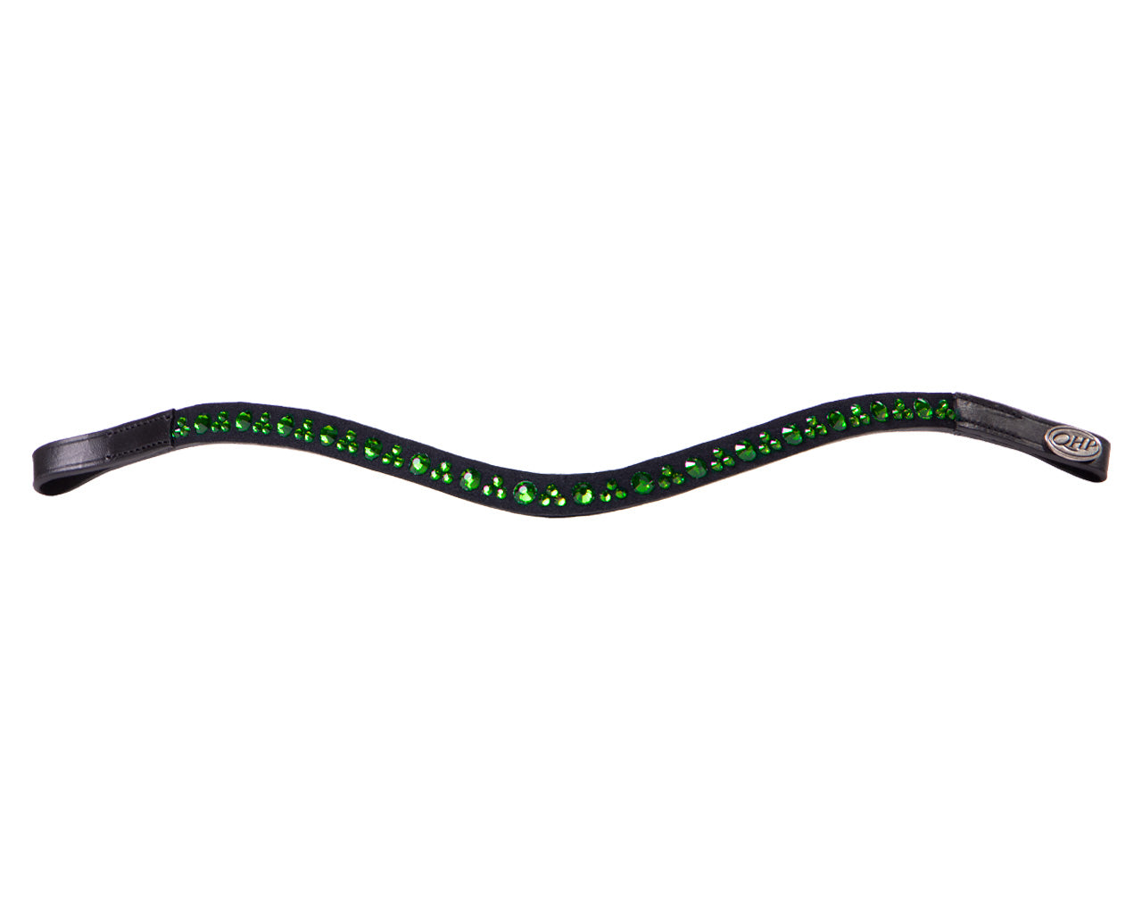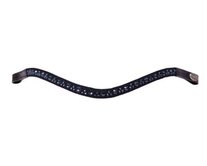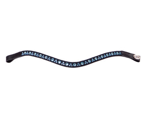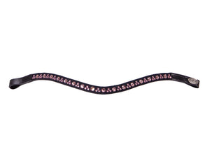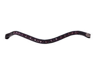Black leather browband in chic wave shape with small and big coloured rhinestones.