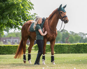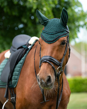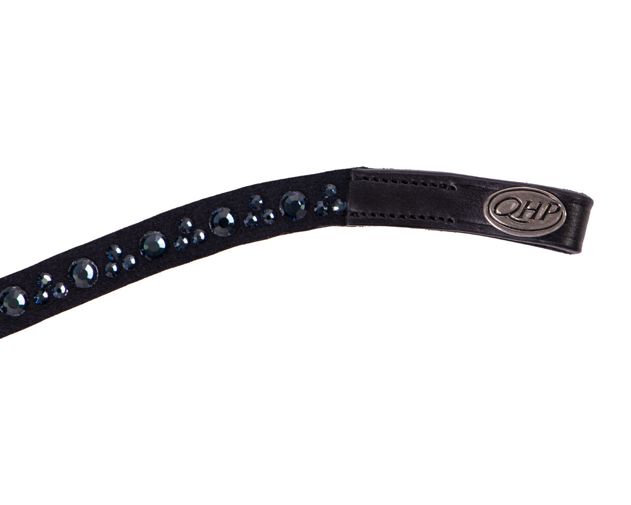 Black leather browband in chic wave shape with small and big coloured rhinestones. Material: Leather Black leather browband with chic wave shape Suede browband with smooth leather loops Decorated with big...