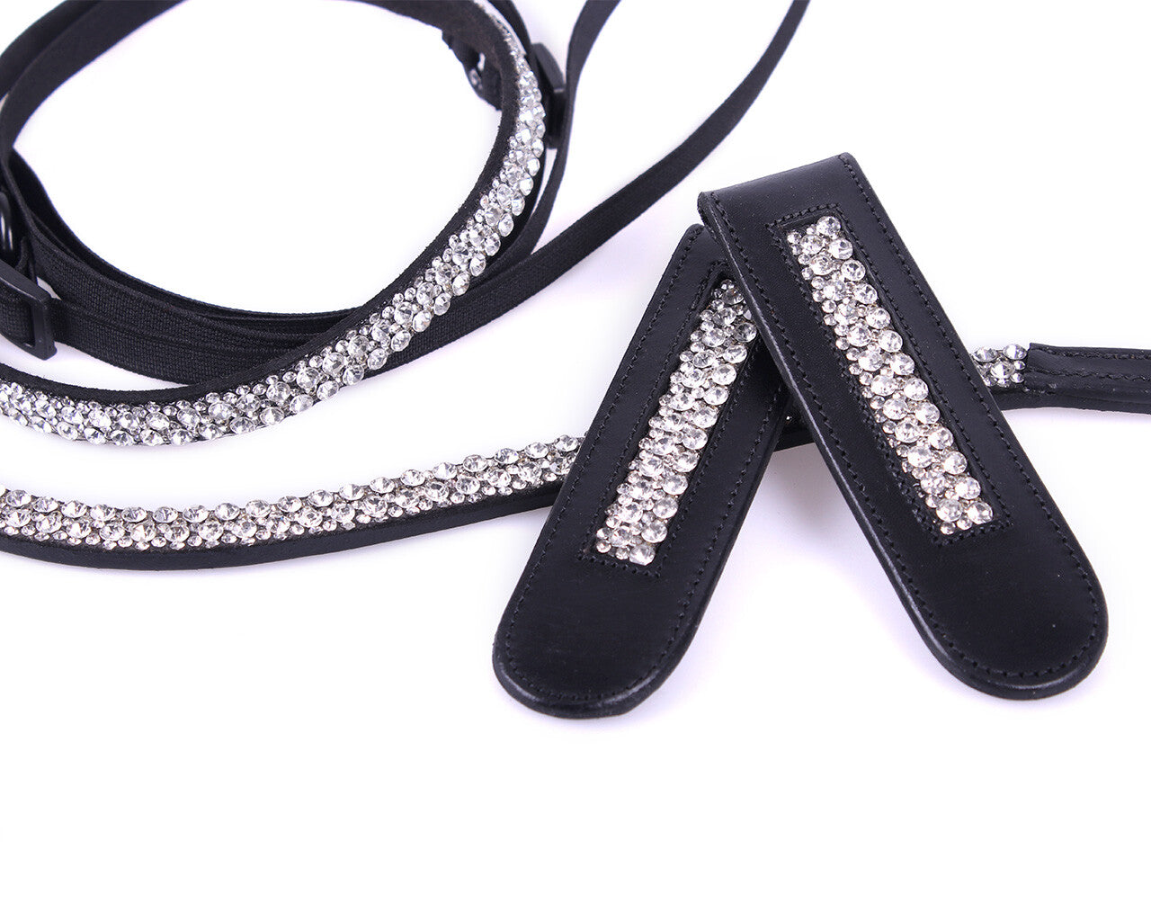 Black leather browband with chic wave shape. The browband is decorated with silver rhinestones in two sizes.
