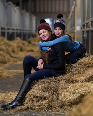 Complete you outfit with this warm fleece lined beanie. The beanie is decorated with a pompon and "Equestrian Sports" text. Finished with a fabric QHP loop.