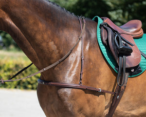 Prevent your saddle from sliding backwards during jumping with the padded chest strap. The strap can be attached to the girth and features a withers straps which makes sure the straps doesn't slide down.