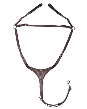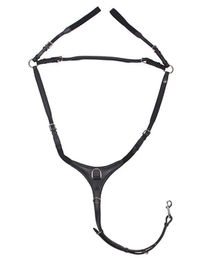 The luxurious breastplate prevents the saddle from sliding backwards, for example during jumping. The breastplate is fully equipped with soft padding to prevent chafing. The breast collar is widely adjustable and it is possible to attach a martingale fork.