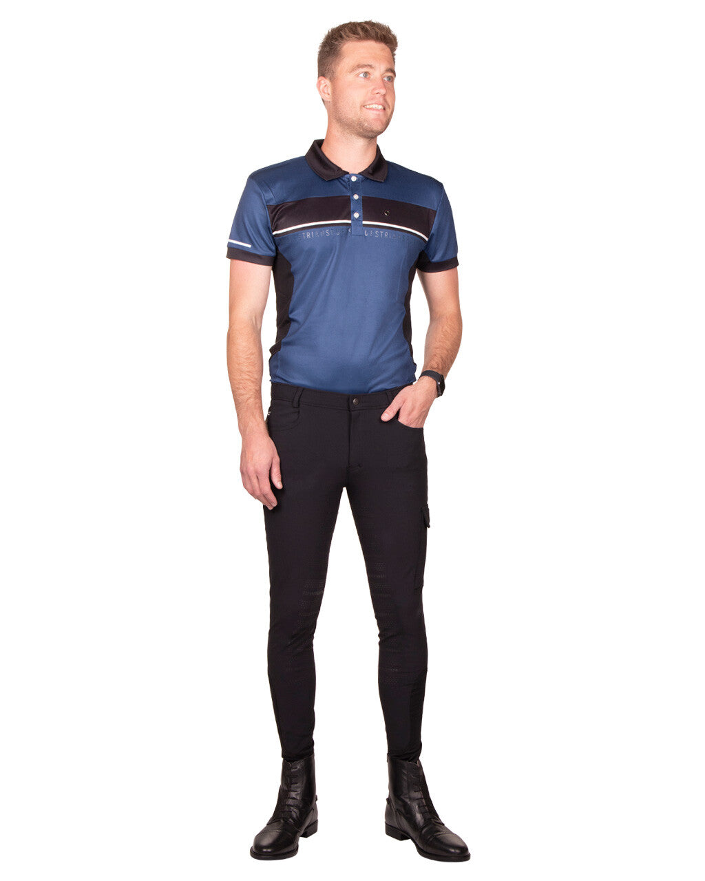 Swen, the sporty riding breeches for men in the "Cargo" style. The pants are comfortable, stretchy, have an excellent fit and are practical due to the pocket on the left leg. In short, perfect for in the stable or during training!