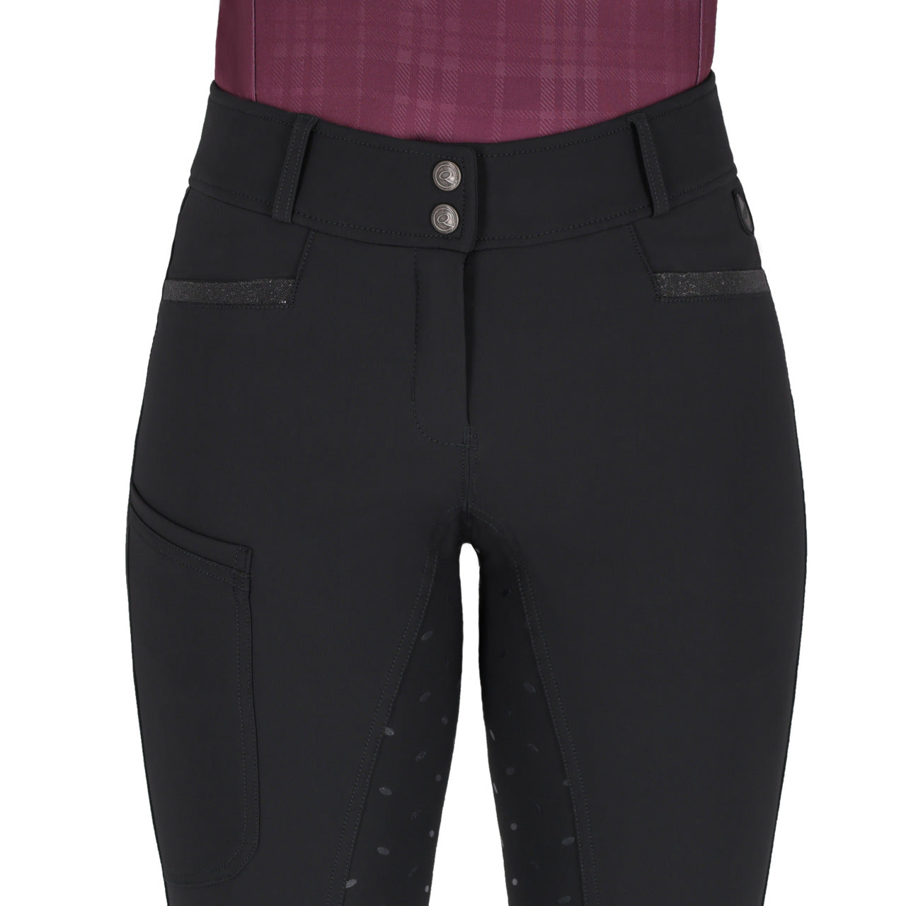 The Zahra riding breeches from the winter collection are breathable, stretchy and feature a high waistband for extra comfort. With excellent shape recovery, they maintain their fit even after frequent use. Equipped with elastic leg closures, full seat with medium grip and practical pockets with glitter trim, these breeches are perfect for any training session.