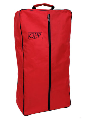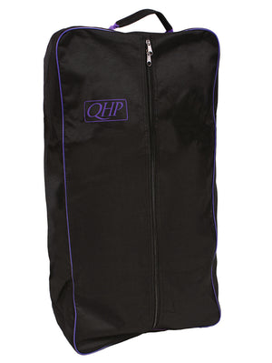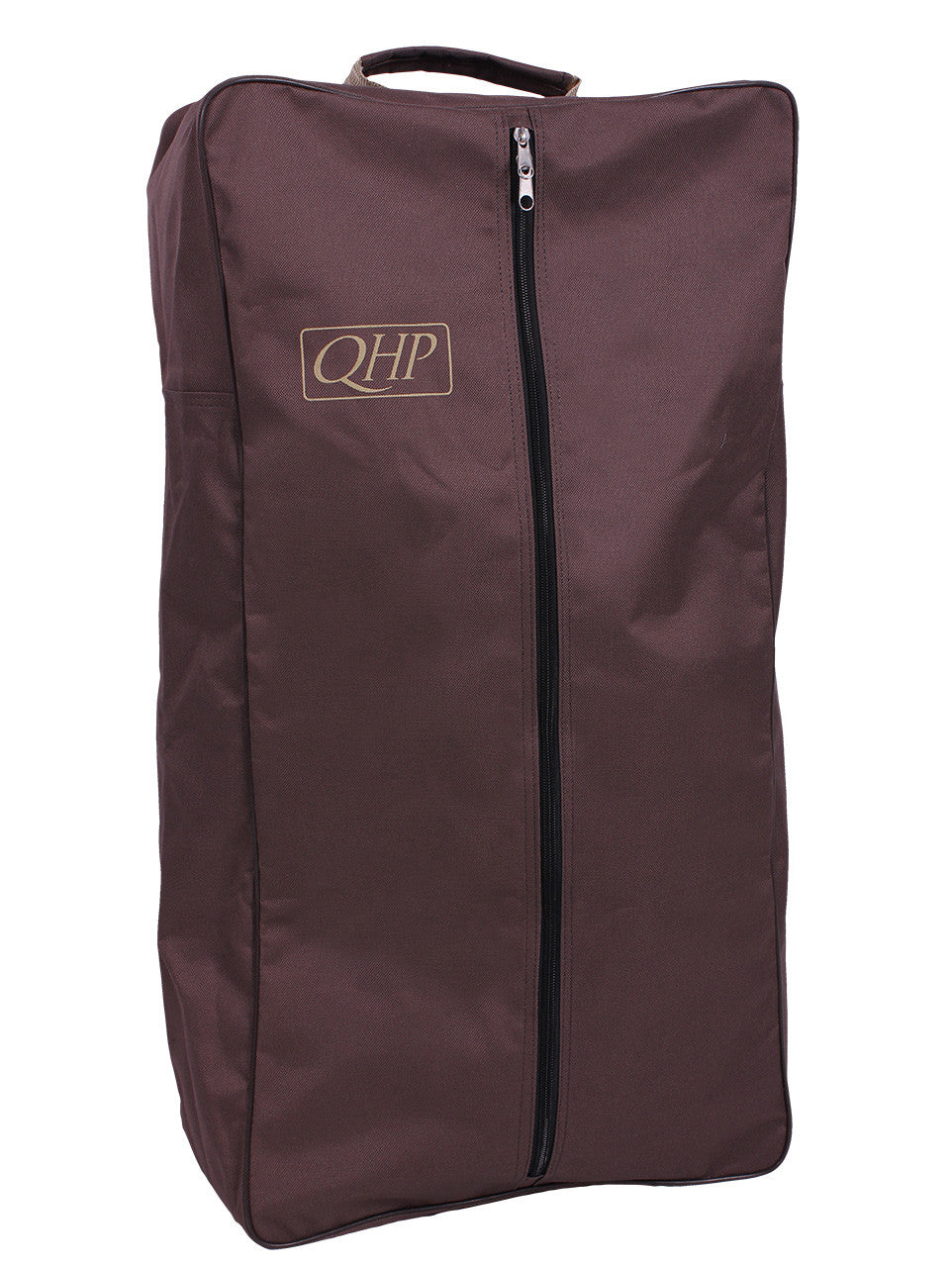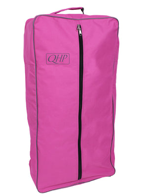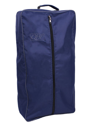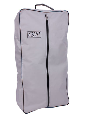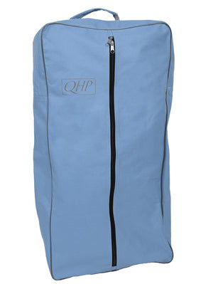 A bridle bag keeps your bridle neat and clean. On the inside is a strap to go around the bridle's crown piece. This model features a zipper on the front and a handle. Decorated with a contrasting logo, handle and trims.