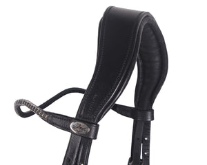 - Features gel padding on the noseband and crown piece which forms to the shape of the horse