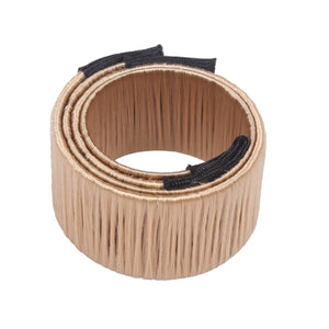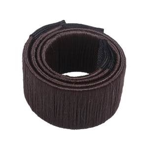 How does this bun maker work? Flatten the strap and wrap it around your hair. Hold it on both ends and slide it to the end of your hair. Roll the hair around the strap up to your head and then curl the strap to create a pretty, neat bun. Super easy! View the video to see it in action.