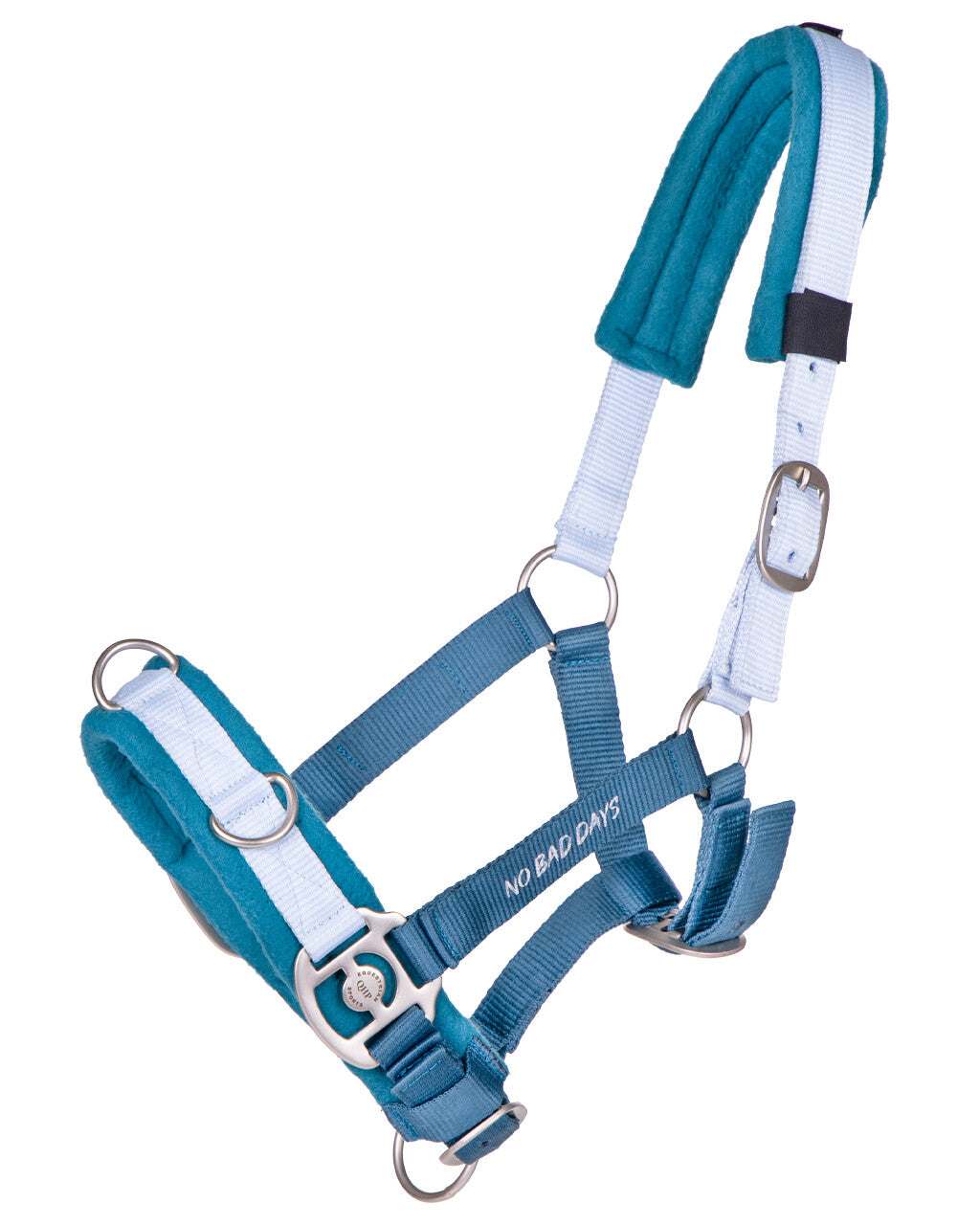 Cavesson from the Thunderbolt collection with 3 metal D-rings on the top of the noseband. A cavesson can be used for lunging or can be used with ground work. Adjustable at three points and fitted with furs under the noseband and headpiece.