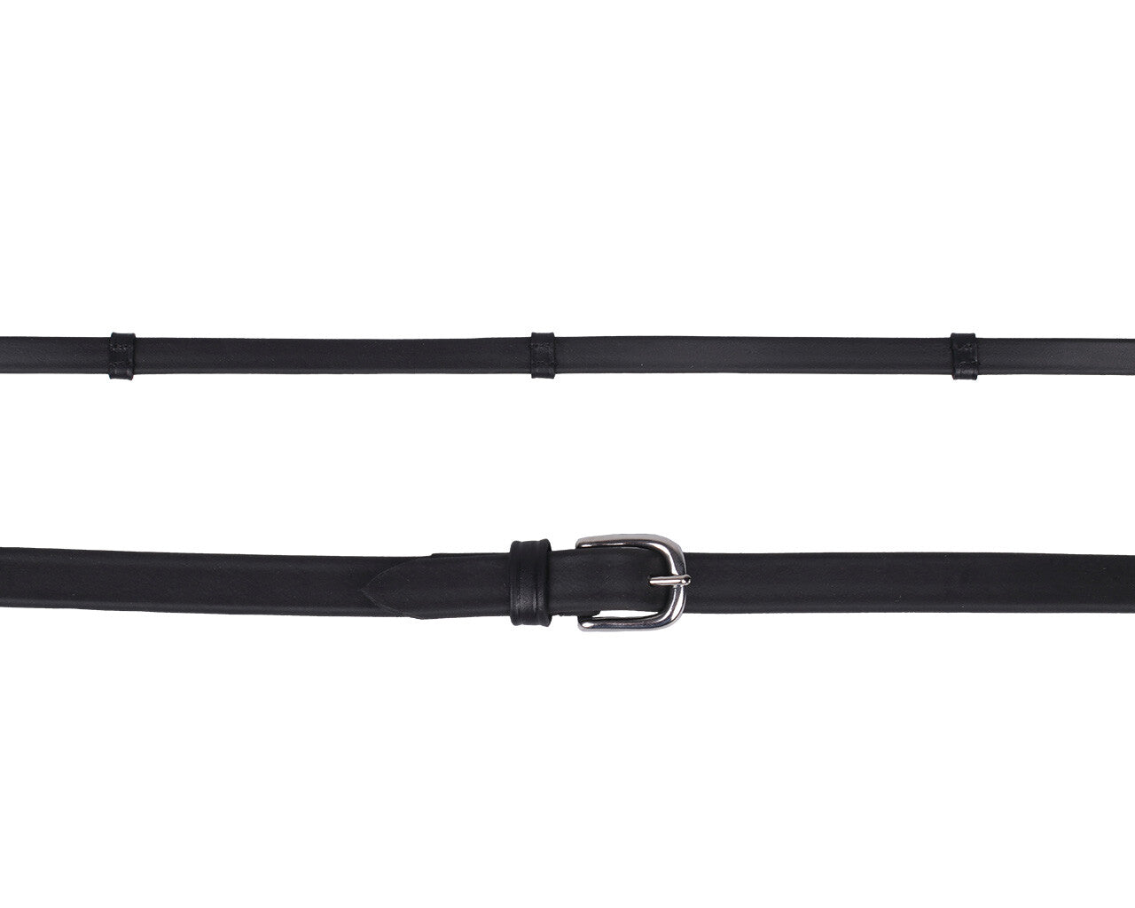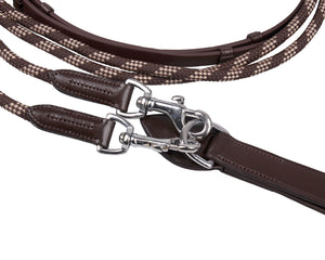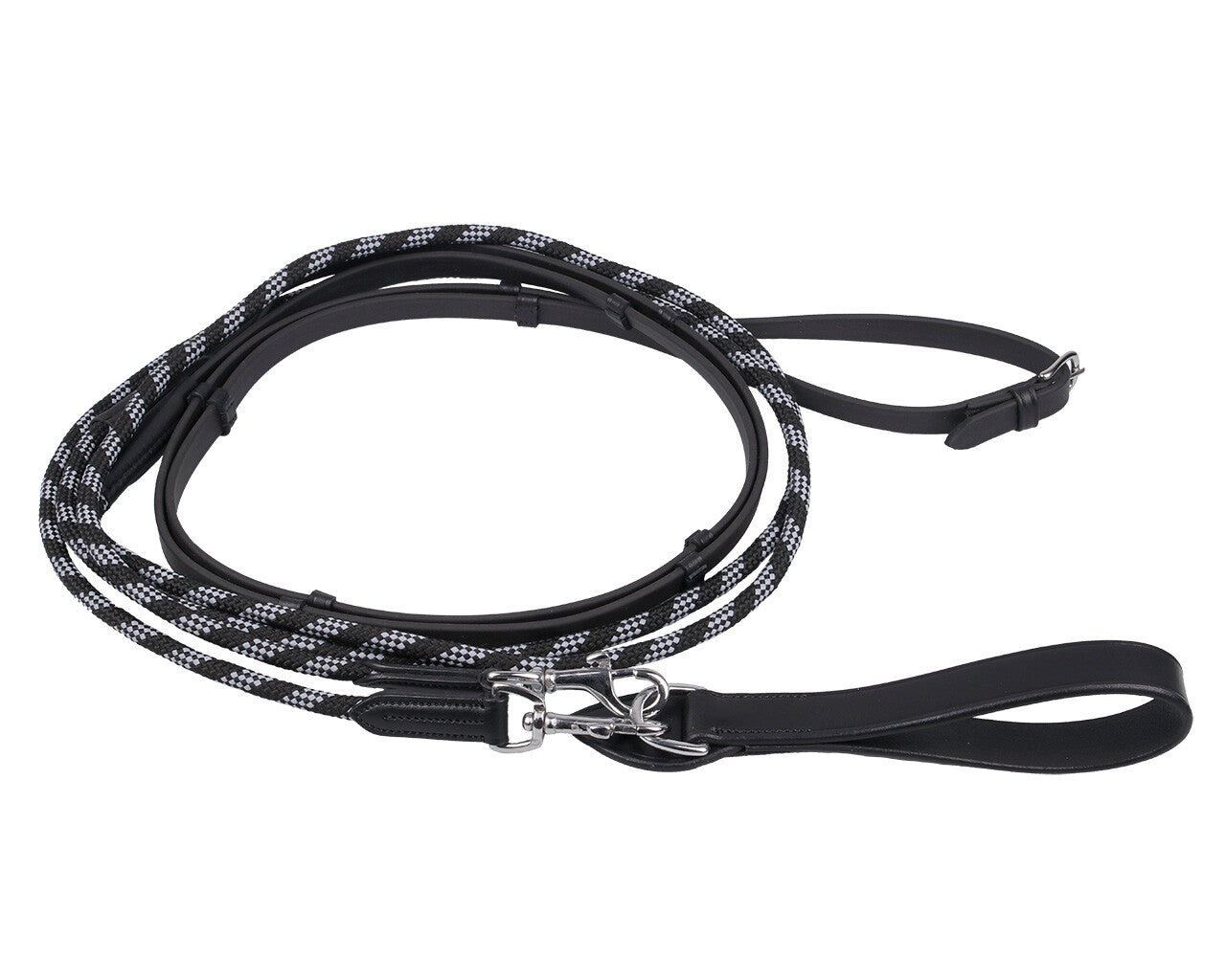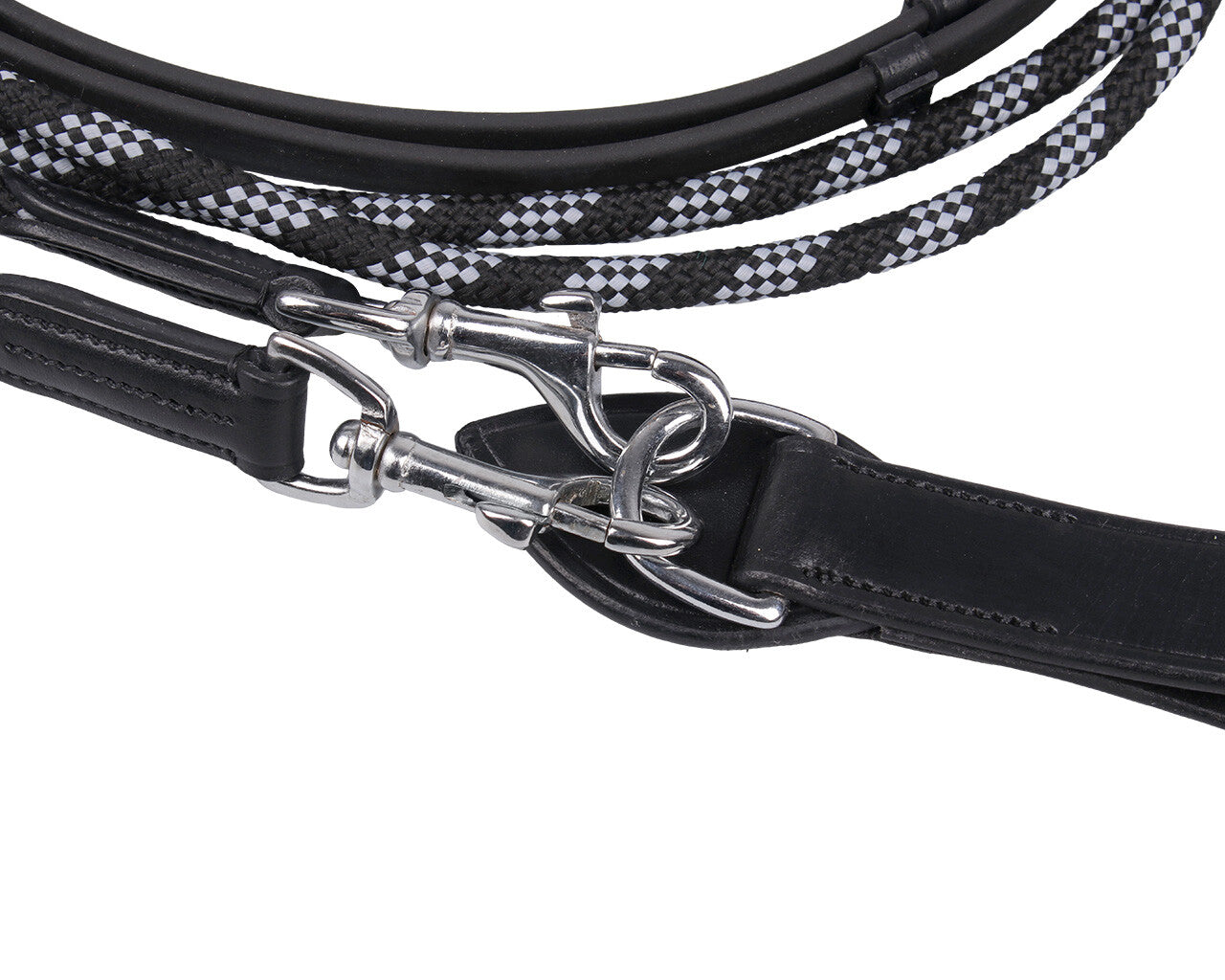 This drawrein from biothane is not only durable and strong, but also very supple. Features a girth loop attachment and two strong snaps.