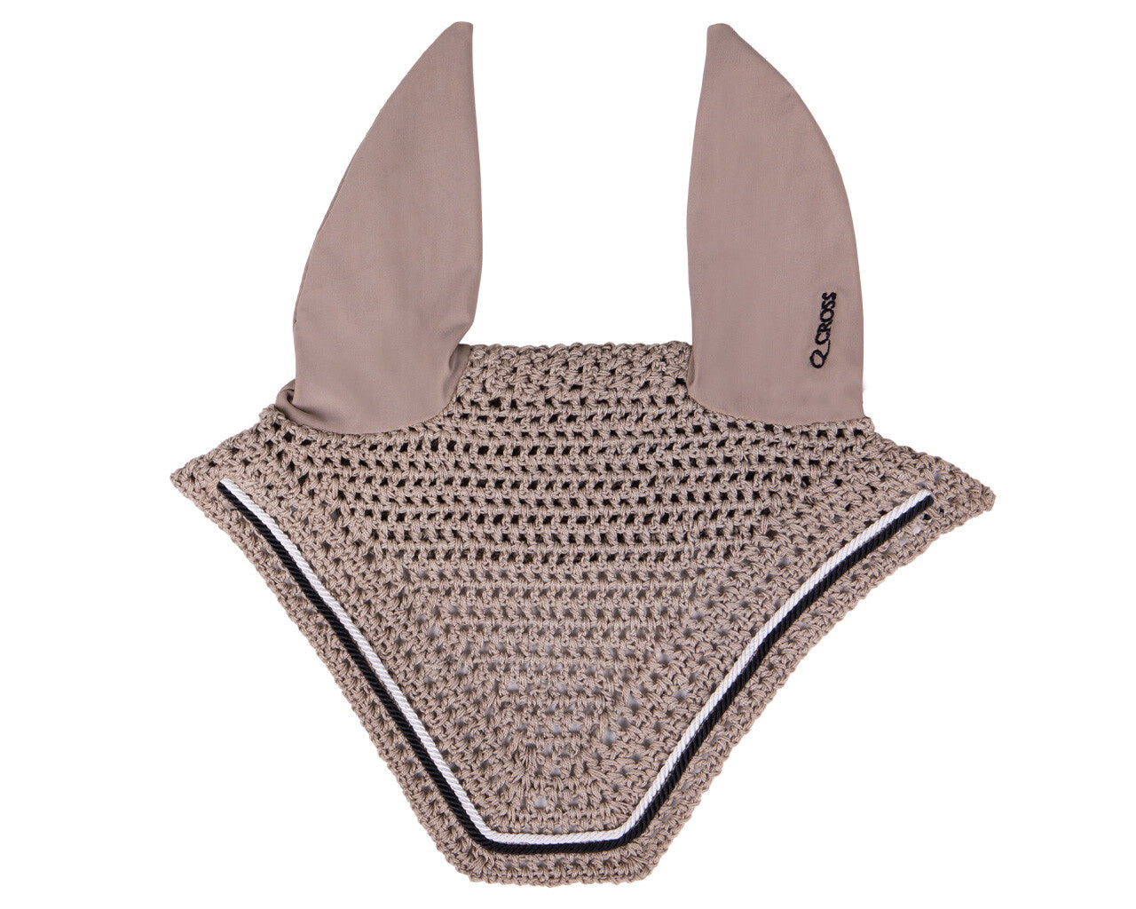 Crochet ear net with elastane ears which completes your Q-Cross outfit. The ear net is decorated with two small cords along the edge. Finished with a Q-Cross embroidery on the left ear.