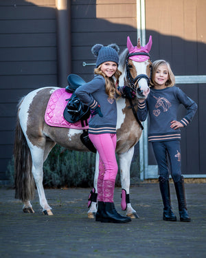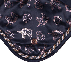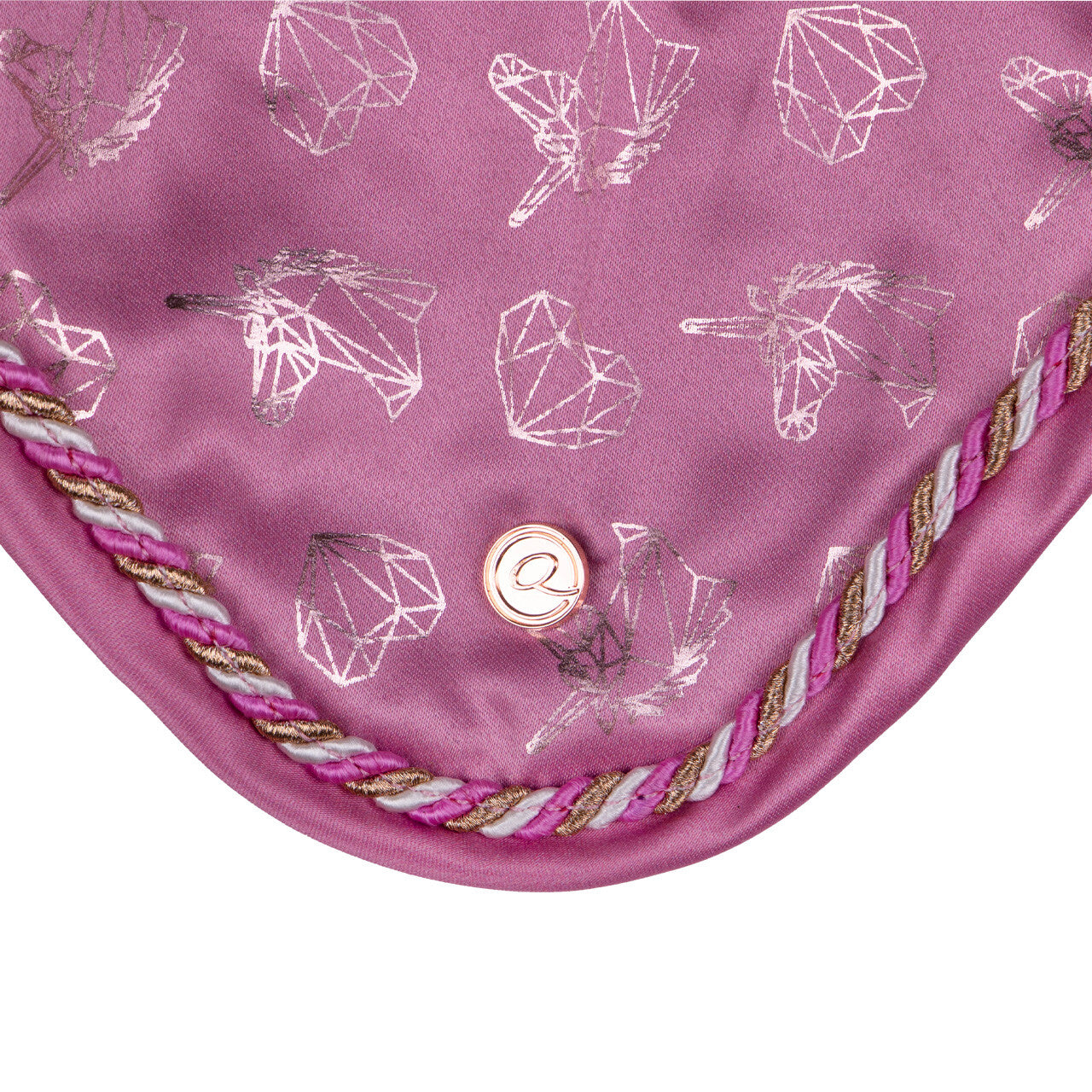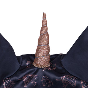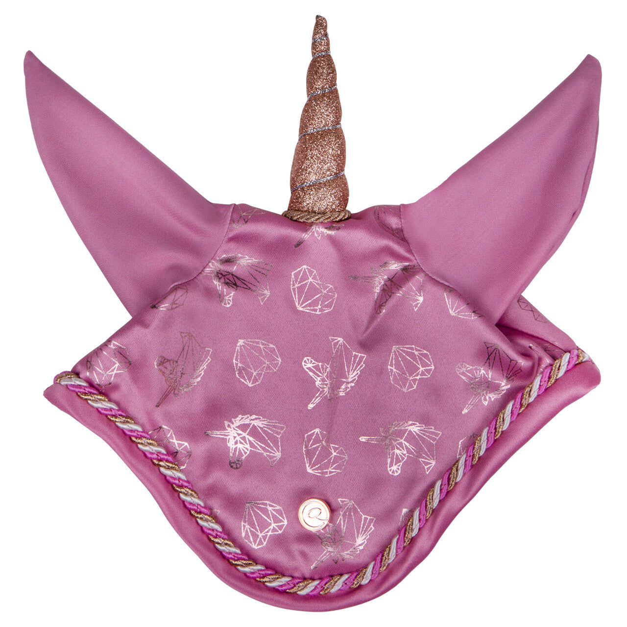 What a cutie! The ear net Didy. This is how you complete the Didy outfit. The gold unicorn print on the ears and the gold trim along the edge of the ear net create the perfect look.