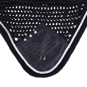 Time to shine! This ear net will complete your Kae set. This ear net has three diamonds, a contrasting print and a silver decorative cord. It also has the text 'Equestrian sports' on the left ear. A fine ear net and indispensable with the rest of your Kae set!