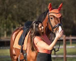 Yes! This ear net from the Menton collection is indispensable in your tack room. The ear net is luxuriously crocheted and has a chic three-colour decorative cord. The golden shades of...