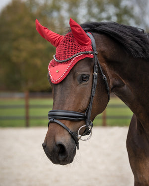 Love is in the air! Up in the clouds with the Valentine ear net. The ear net is red with a gold Q-pin in the shape of a heart. Are you already in the clouds?