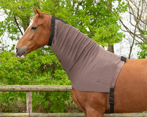 Eczema neck cover made of elastic fabric, which gives the neck the perfect fit. The neck features an elastic throatlatch and surcingle. The neck cover protects against insect bites, especially those...