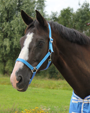Basic model synthetic head collar. Available in many bright colours and in different sizes. Adjustable at the crown with a slider. Want to know what size your horse needs?Check out the...