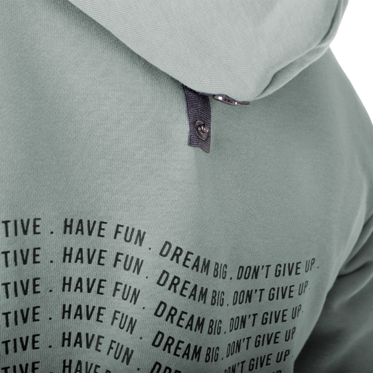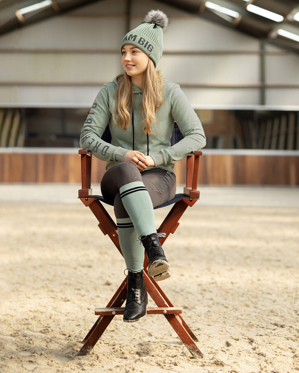 Get sportily dressed during the cold days in this sporty sweater from the Equestrian Dream line! The sweater features a drawstring hood, which you can secure with a snap button on the back. Motivational texts are printed on the right sleeve and on the back. Let those workouts come!