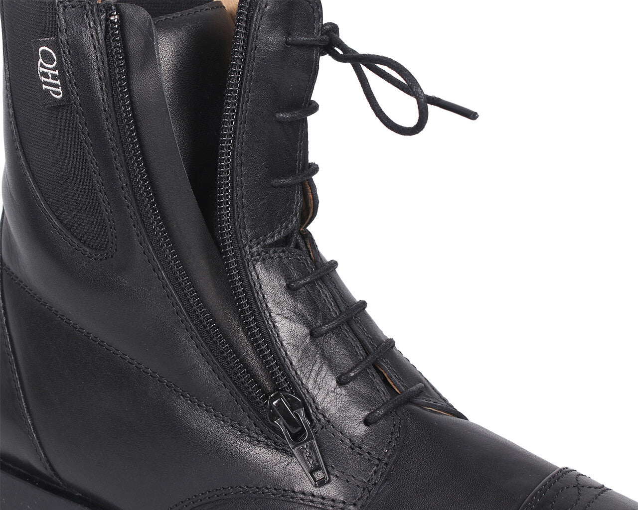 Jodhpur Ezra has a classic look because of the laces and decorated toe cap. The laces, elastic band inserts and slanted zipper make this jodhpur easy to put on and very comfortable to wear. In addition, the supple leather is softly padded around the ankle.