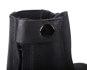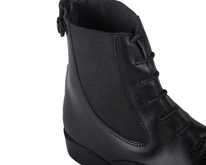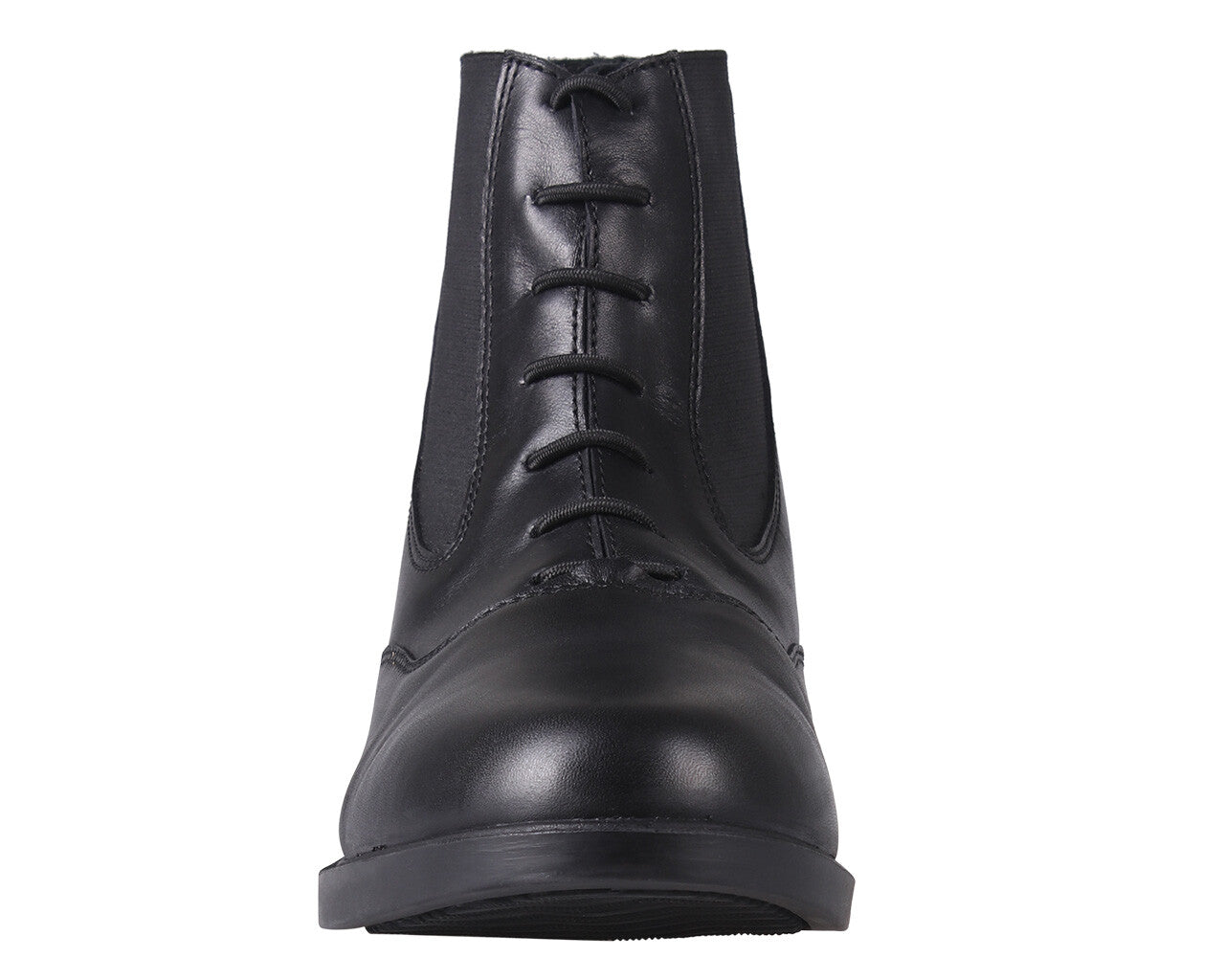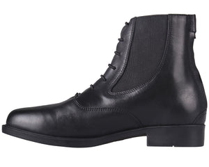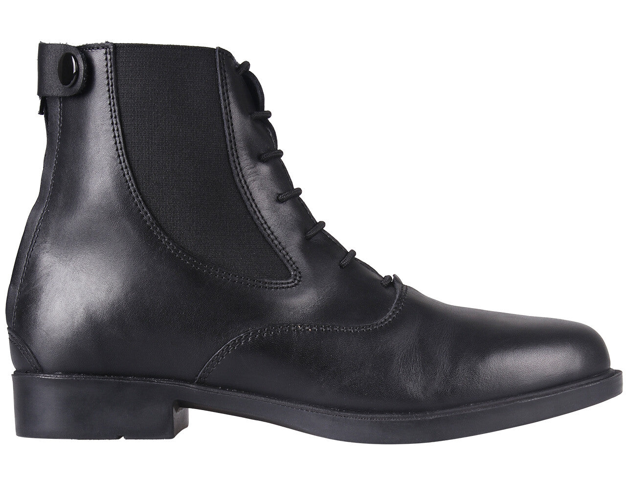 The Tulsa is a tough jodhpur made of leather. Easy to put on due to the elastic laces on the front. The large elastic insert provides a proper fit around the ankle.