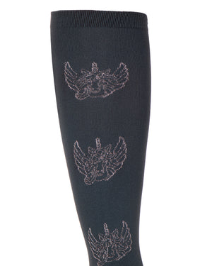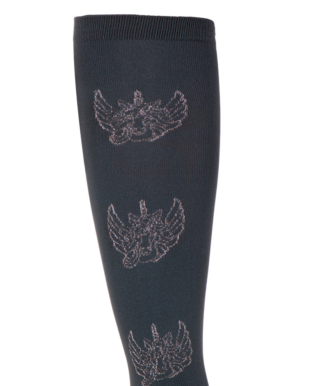 - Knee stockings with eye-catching prints in the shape of a unicorn