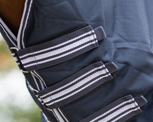 Separate neck cover with 100 g fill. Compatible with turnout rugs that feature D rings at the front. The neck is waterproof and easily attached with three clips.