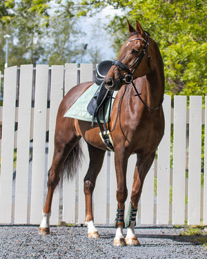 This anatomically shaped version of the Puff Pad has a special shape that prevents chafing and gives the withers plenty of clearance. On the top suedine fabric is used while the bottom consists of highly absorbent fabric.