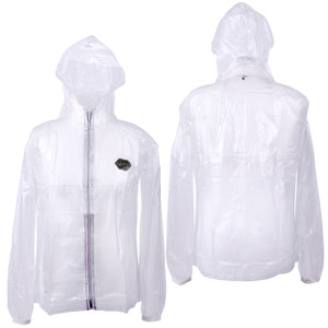 Rain coat suitable for horse riding. Perfect to keep your competition clothing dry while riding. Also usable for regular outdoor riding. Material: PVC Lightweight transparent raincoat with hood Reusable Zipper on...