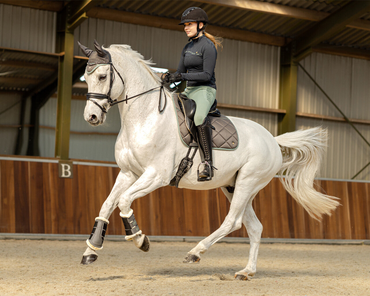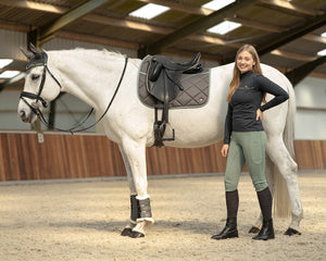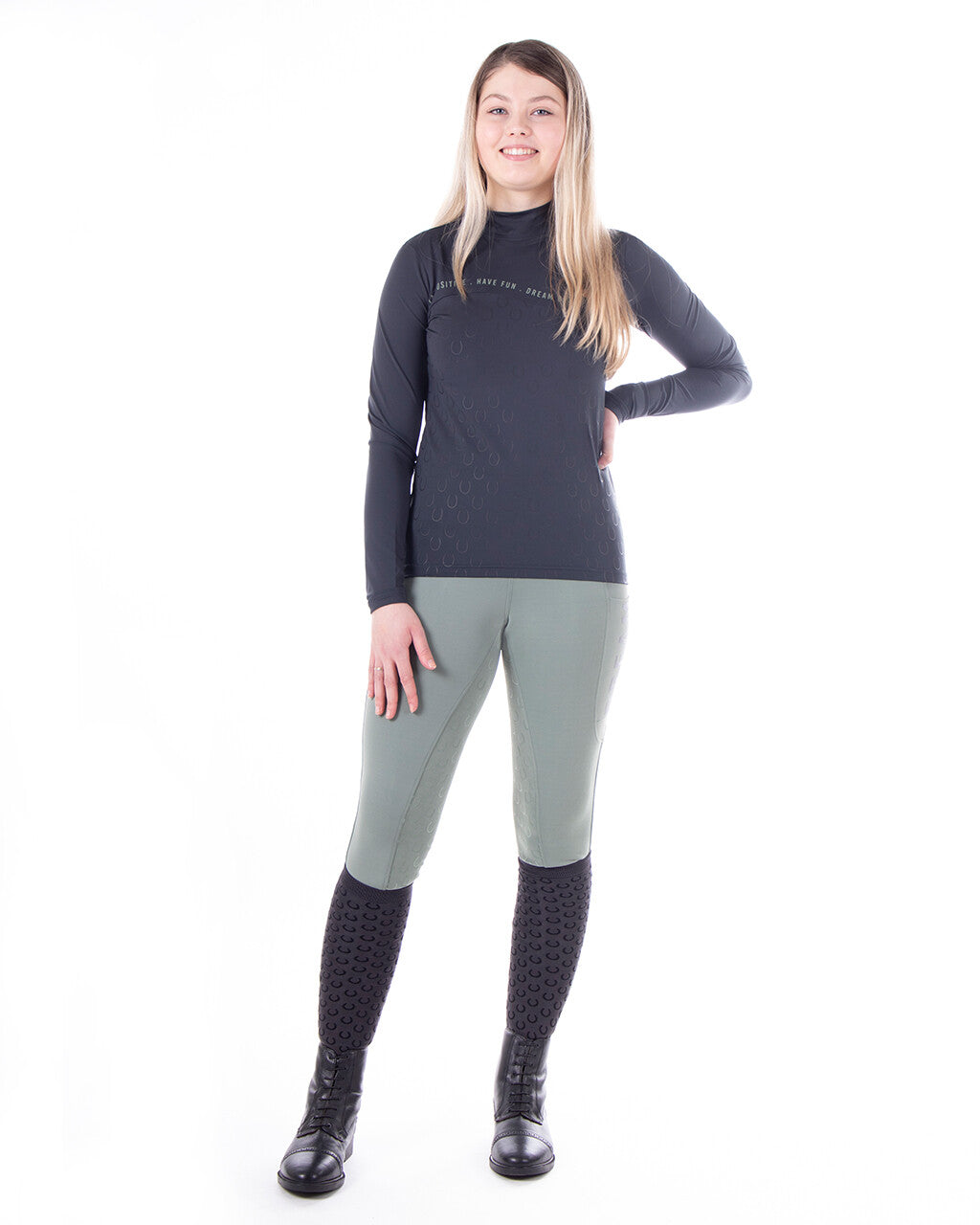 Ideal riding tights for the colder days thanks to the brushed inside. These sporty riding tights from the Equestrian Dream line feature an elastic waistband with belt loops and a slip pocket on the left leg for storing your phone. The medium full grip consists of a print of horseshoes.