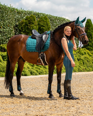 • The side of the legs features a text strip that reads "Equestrian Sports"