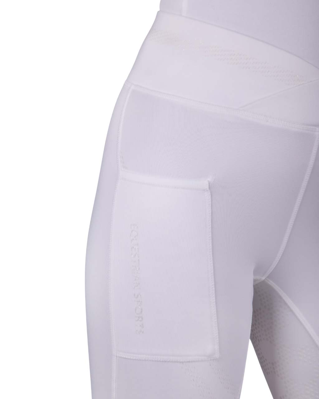 Sporty riding tights that keeps you warm on cold days because of the soft, warm inside. The riding leggings with eye-catching waistband are decorated with silicone prints on the thighs and feature a graphic anti-slip pattern. With a handy pocket on the right thigh to keep your phone while riding.