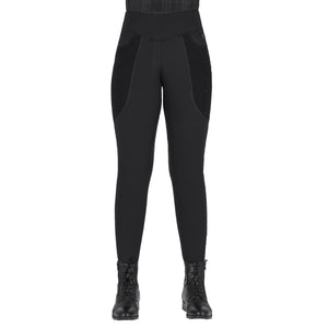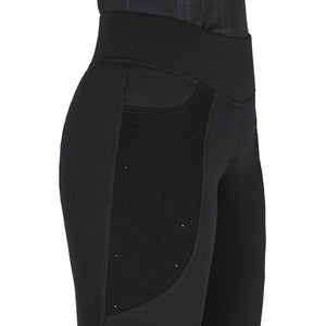 The Zahra riding tights from the winter collection are made of 4-way stretch fabric with a soft brushed interior for optimal comfort and warmth. With a high waist and elastic waistband, these tights offer a perfect fit. The medium leg grip features a decorative pattern and the pockets on both thighs are finished with a sheer fabric and rhinestones. A QHP logo on the left side completes the Zahra riding tights.