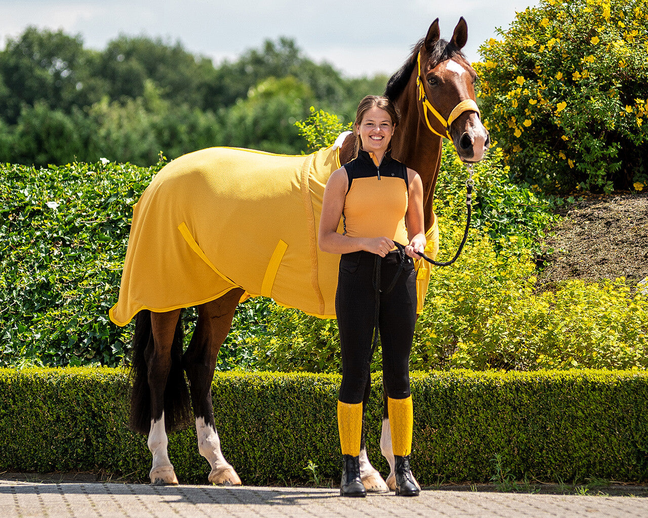 Get into the flow with the Summer Glow! This summer show rug is made of a breathable waffle fabric and features luxurious velvet details. Can you already see your horse shining?