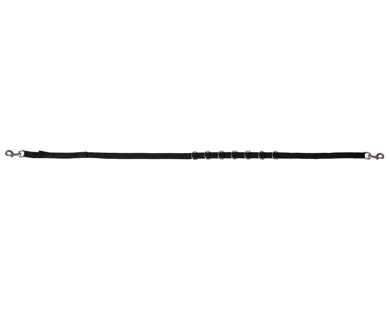 During lunging, side reins are used to teach the horse to get in contact with the bit. It can be used for a lower, horizontal or higher position of the head. The rein features 6 D-rings to quickly change the rein in length, which makes it very easy to use. The elastic insert provides comfort for the horse.