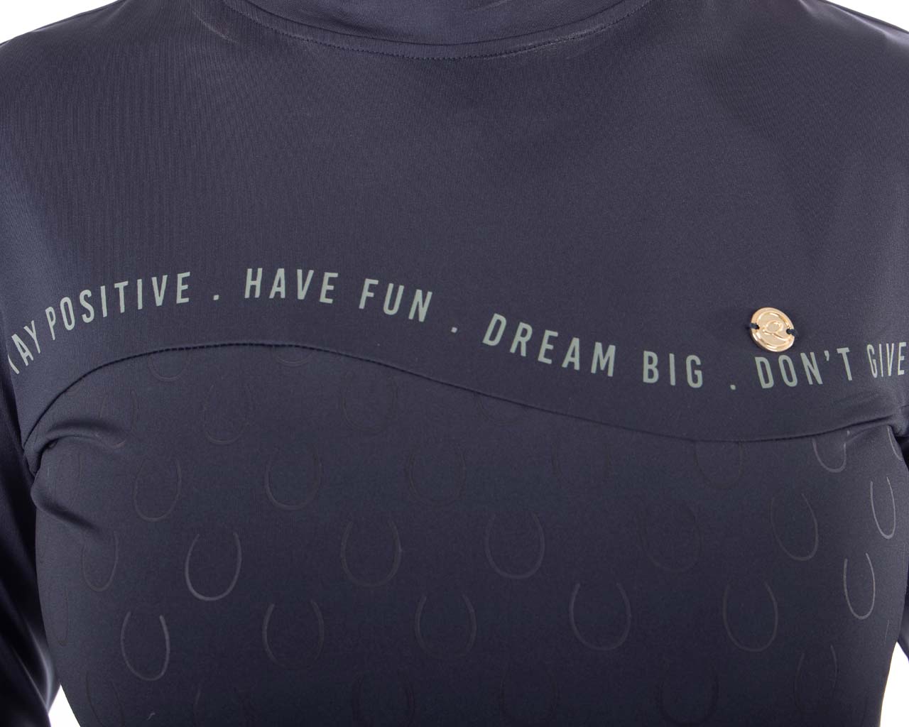 Get stylishly dressed during your workouts in this sports shirt from the Equestrian Dream line! The shirt is made of a flexible stretch fabric. It features motivational texts and a pattern of horseshoes.