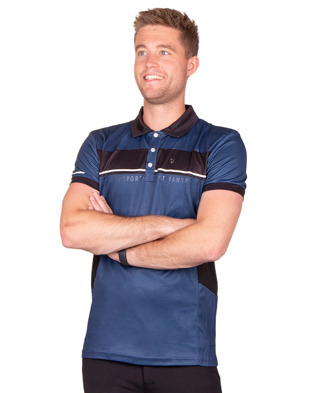 This basic is a musthave, right? With sports shirt Kai you are ready for the summer. Combine Kai with breeches Swen and you're ready to train! The model in the studio...