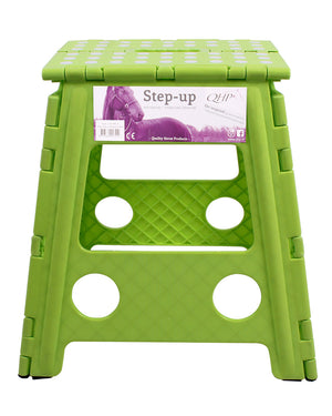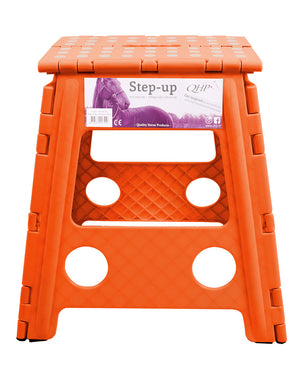 The Step up will not only assist you mounting your horse, but also when braiding or grooming, the step up can come in handy. The stool is foldable, which makes it easy to carry to competitions. The stool features a special anti slip surface, so you'll be in a secure position when using it.
