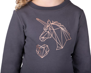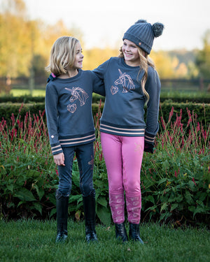 Let's get cozy with the Didy sweater. The grey colour combined with the rose gold details makes it a party to wear this sweater. Just like the Didy leggings, the jumper has pretty contrasting pink glitter stripes. And the rose gold unicorn on the front completes it all!