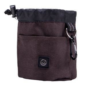 Small bag which can be used to store treats or other edible rewards when doing groundwork. The pocket can be attached in several ways to a belt or pants. It has a loop with D-ring, carabiner hook and two loops on the back.
