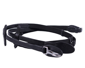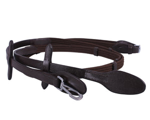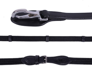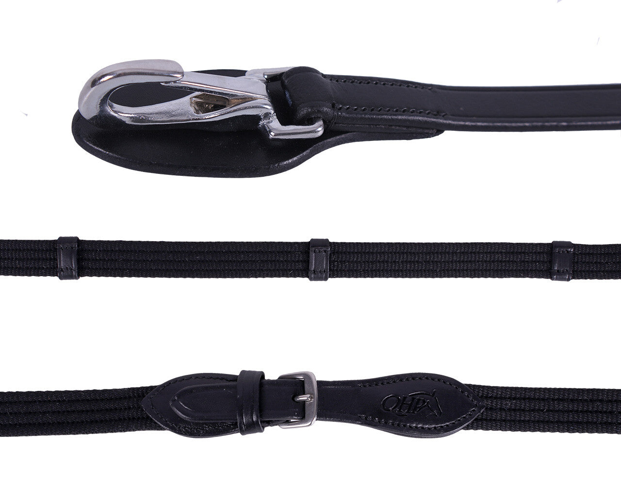 This web rein features clips which can be attached and removed easily. This is useful, for example, when you want to remove the reins from the bit for lunging.