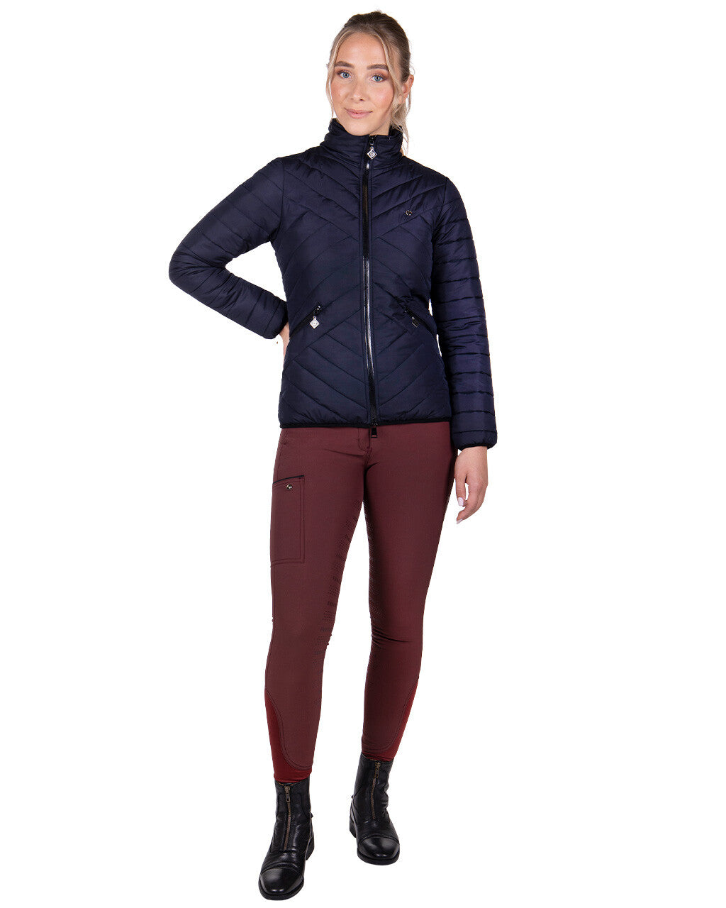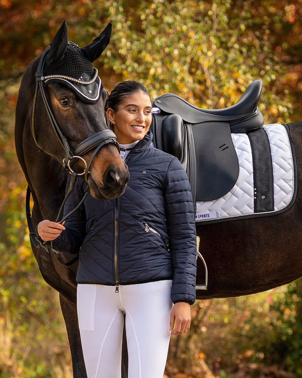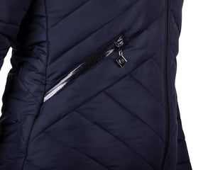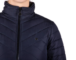 Must-have alert! The beautiful winterjacket Jolijn. The jacket has two pockets on the front and a Q-pin on the left chest. The seams in the jacket make a nice pattern and there is a subtle glitter pattern on the zip.