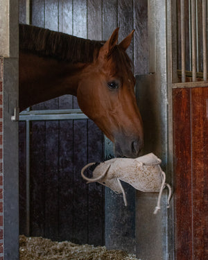 The perfect buddy for your horse in the stable! Does your horse sometimes get bored in the stable? With the horse toy this is a thing of the past. Not only does it look nice, but it also gives your horse an activity in the stable.