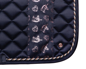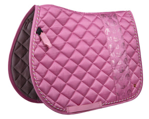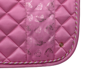 Cute saddle pad with super cute golden unicorn print on the back. The saddle pad is decorated with a two-tone decorative cord along the edge. Equipped with girth loops to ensure...