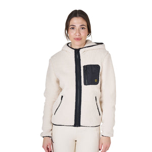 Praktisk och bekväm fleecetröja för dam med polyesterinlägg – en perfekt följeslagare under vintern. Plaggets främsta styrka är den värmeisolerande förmågan. Den är utrustad med en bekväm och elegant hög krage som ger extra skydd mot kyla. Polyesterinläggen, såsom framfickan med dragkedja, gör tröjan praktisk och bekväm i alla lägen. Tröjan har en halv dragkedja (mid-length) framtill och en central magficka där du smidigt kan förvara dina personliga tillhörigheter.