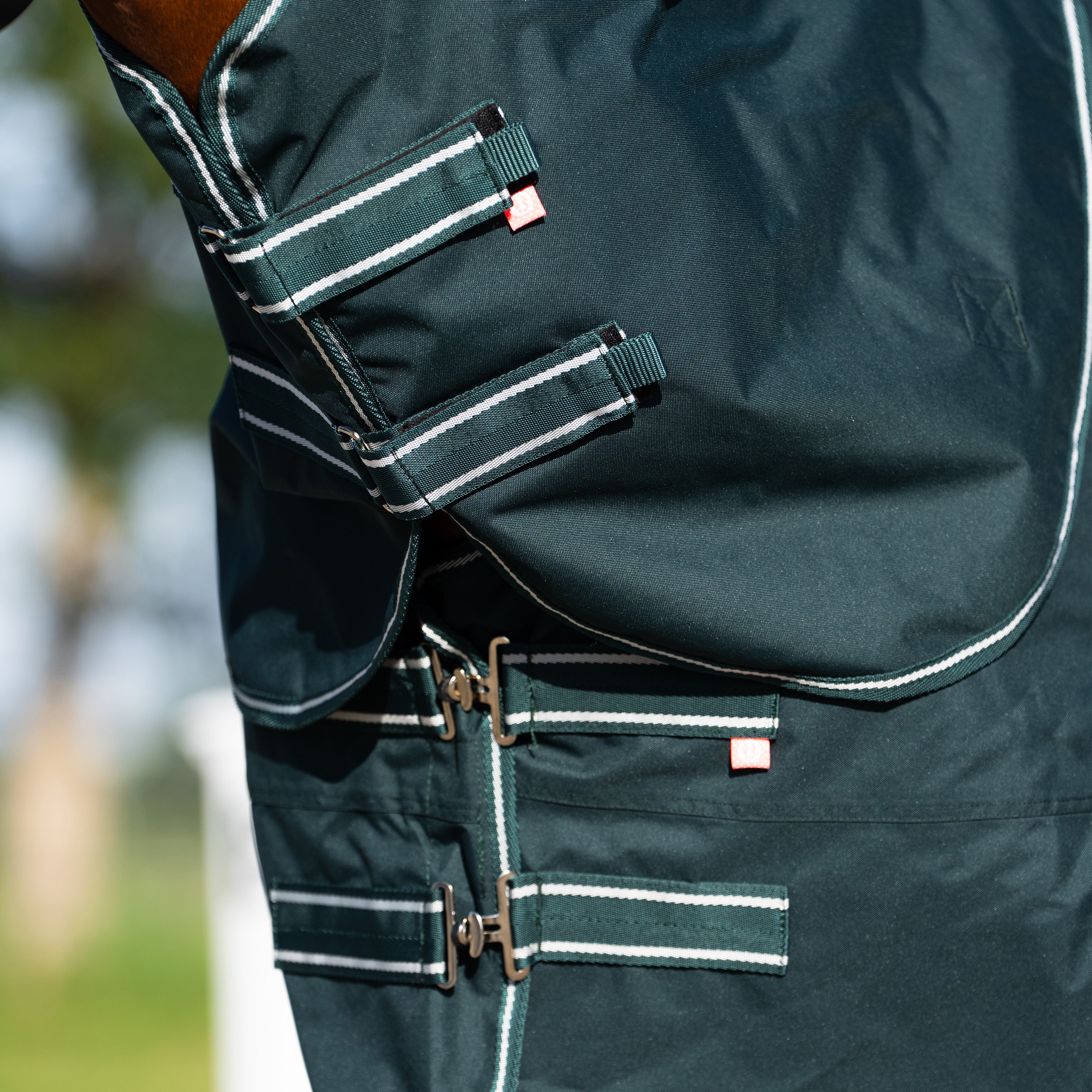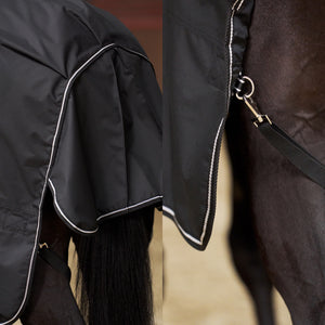 Stand out with the IRHBasic Outdoor Blanket, your horse's ultimate winter essential. Designed for those who love to express individuality with flair and confidence, this glamorous turnout blanket isn't just functional—it's fashion-forward. Crafted with a robust outer fabric for durability, this waterproof and breathable blanket comfortably shields your horse from harsh weather. The cosy 300-gram filling provides exceptional warmth and comfort even on the chilliest days, while the detachable neck offers versatile protection depending on conditions. With striking details and the unmistakable Imperial Riding sparkle, your horse will shine as bright as your own equestrian style.